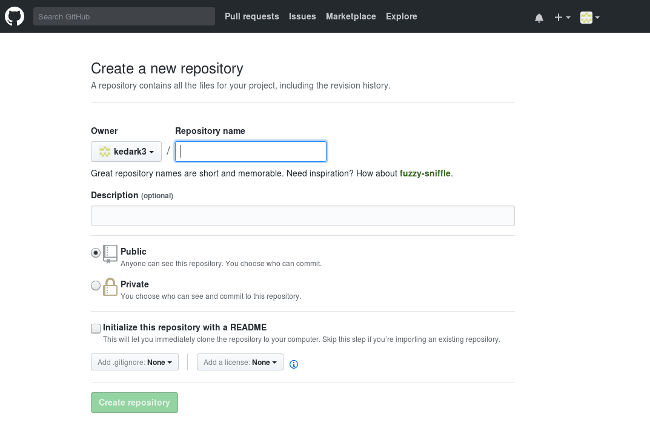 一个仓库( repository),类似于能储存物品的场所或是容器;在这里,我们创建仓库存储代码。在 + 符号(在插图的右上角,我已经选中它了) 的下拉菜单中选择 New Repository。