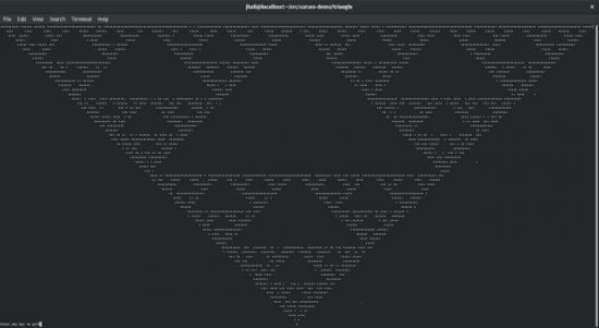 所以我按照这些指令写了这个程序,程序使用 curses 函数来向终端屏幕绘制谢尔宾斯基三角形:
