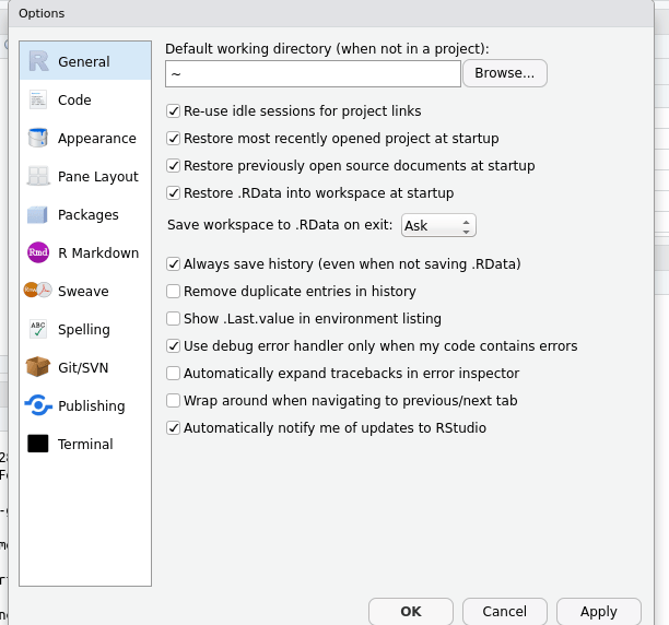 在阅读更多内容并观看 YouTube 视频后,我意识到我还应该安装 RStudio。Rstudio 是 R 语言的开源 IDE,易于在 Debian、Ubuntu、 Fedora 和 RHEL 上安装。它也可以安装在 MacOS 和 Windows 上。