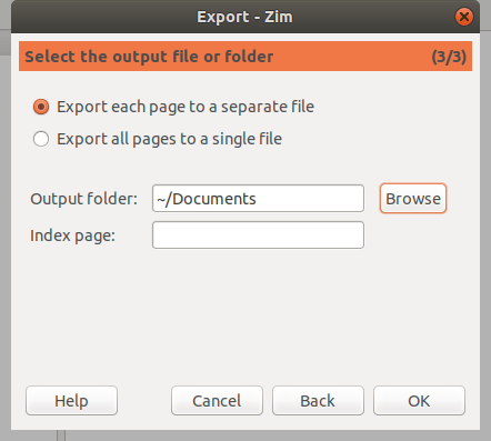 为此,点击你想要导出的维基页面。然后,选择 “File > Export”。决定是要导出整个笔记本还是一个页面,然后点击 “Forward”。