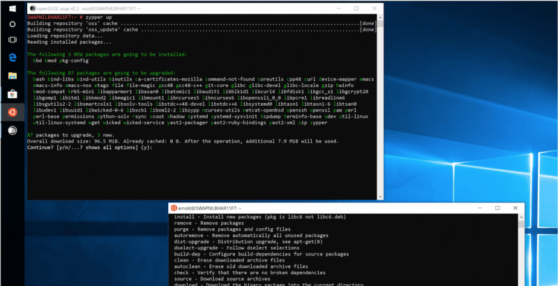 WSL 官方支持 openSUSE/SUSE Linux Enterprise 和 Ubuntu。您也可以安装其他发行版,但是我只需要它们当中的二者之一就可以完成我的所有工作,毕竟,我只需要访问一些 Linux 基础程序。