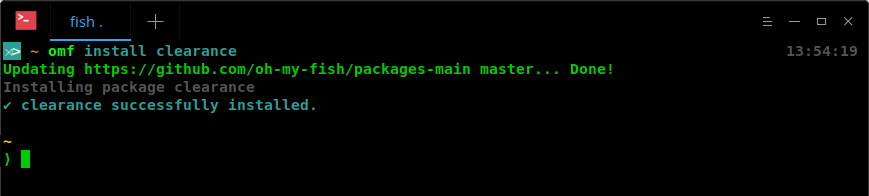 请允许我安装一个主题,例如 clearance 主题,这是一个极简的 fish shell 主题,供那些经常使用 git 的人使用。为此,运行: