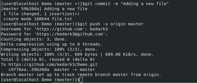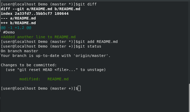 cd Demo/ ls cat README.md echo "Added another line to REAMD.md" >> README.md cat README.md git status
