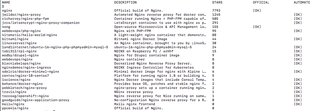 现在假设你想在系统上安装 Nginx,运行 search 命令来找到需要的镜像: