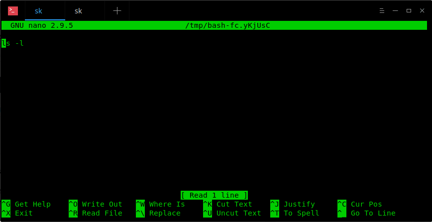 现在再输入 fc 就可以使用 nano 编辑器来编辑上一个命令了。