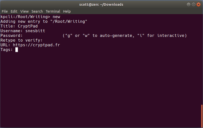 Kpcli 是一个键盘驱动的 shell,可以完成其图形化的表亲的大部分功能。这包括打开密码数据库、添加和编辑密码和组(组帮助你组织密码),甚至重命名或删除密码和组。