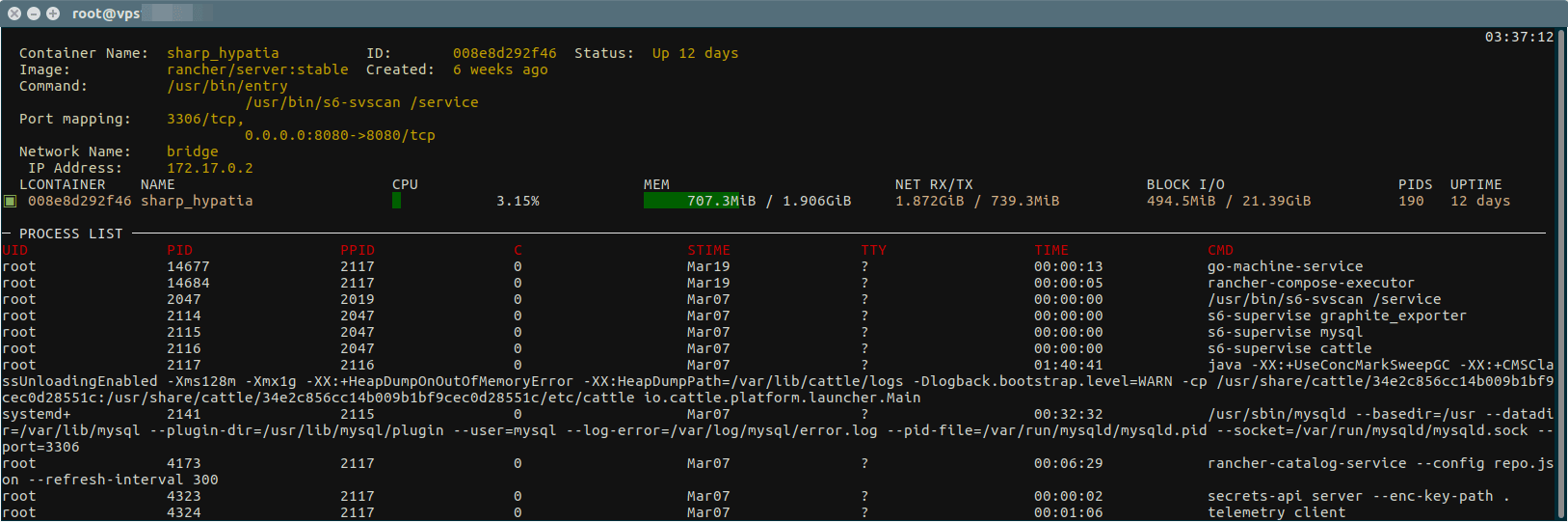 Dry 可以提供类似 docker ps 的指标输出,但输出比 docker ps 内容详实、富有色彩。