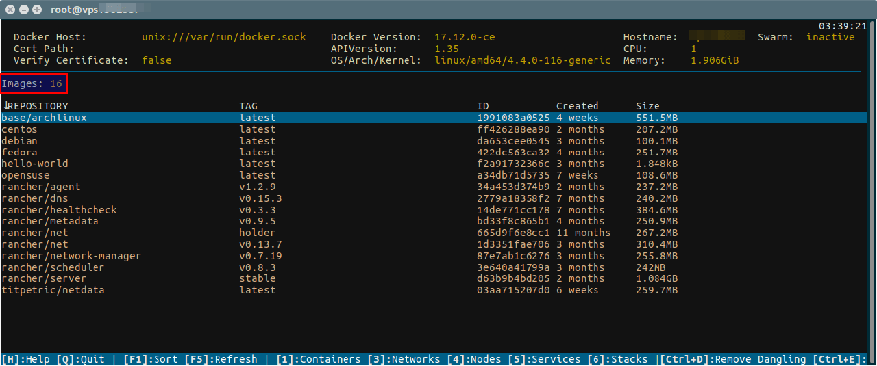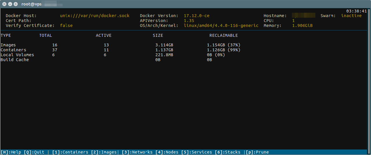 可以使用 F8 键查看容器、镜像及本地卷的磁盘使用情况。