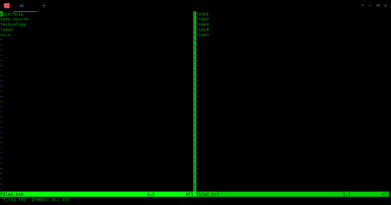 $ vim -o file1.txt file2.txt