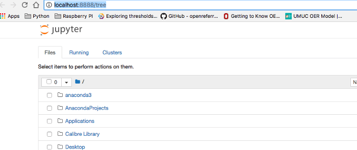 很快,我的浏览器打开并显示了我在 http://localhost:8888 的 Jupyter Notebook 服务器。(支持的浏览器有 Google Chrome、Firefox 和 Safari)