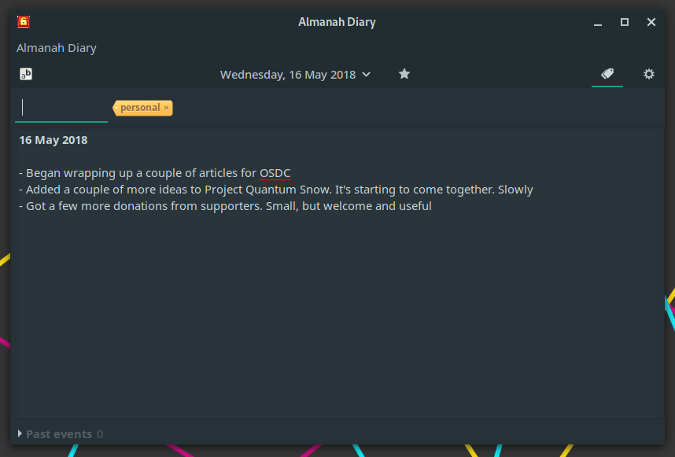 虽然有一个可以将纯文本文件导入该程序的功能,但我无法使其正常工作。尽管如此,如果你喜欢一个简单,能够快速记日记的软件,那么 Almanah 日记值得一看。