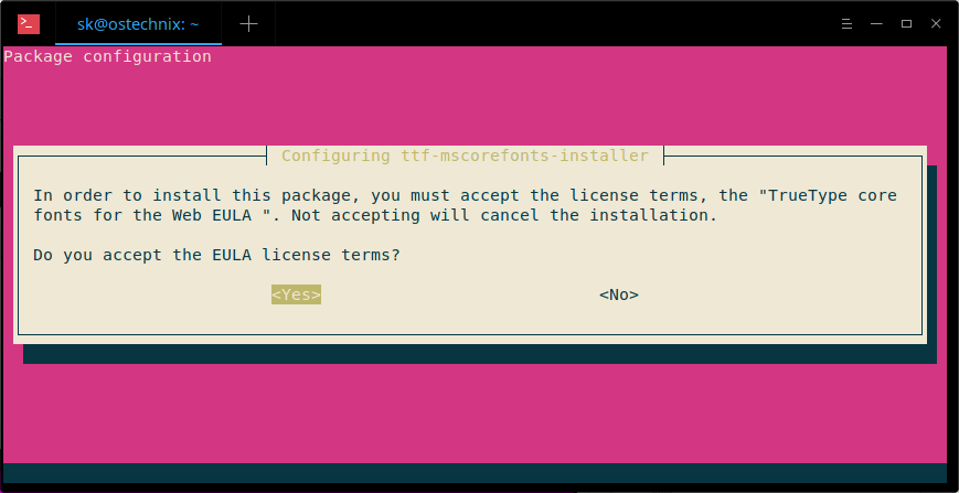 $ sudo apt install ttf-mscorefonts-installer