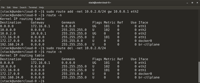 * route del -net <network ip/cidr> 从路由表中删除一个指定的路由条目。