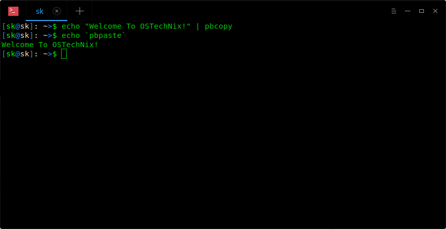 $ echo "Welcome To OSTechNix!" | pbcopy