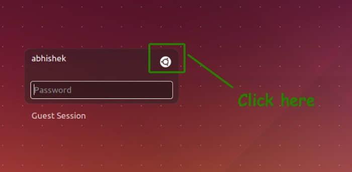 Cinnamon 安装完成后,退出当前会话,在登录界面,点击用户名旁边的 Ubuntu 符号: