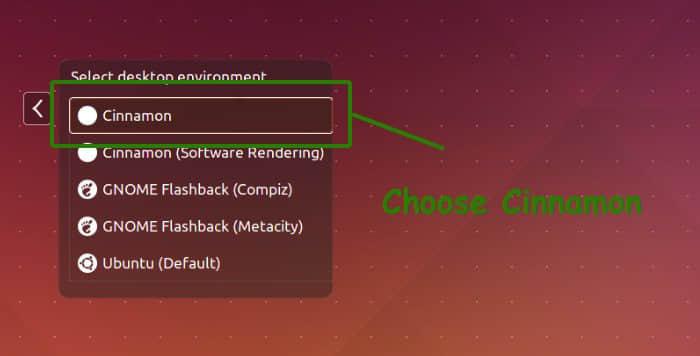 之后,它将会显示所有系统可用的桌面环境。选择 Cinnamon。