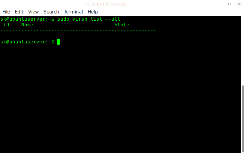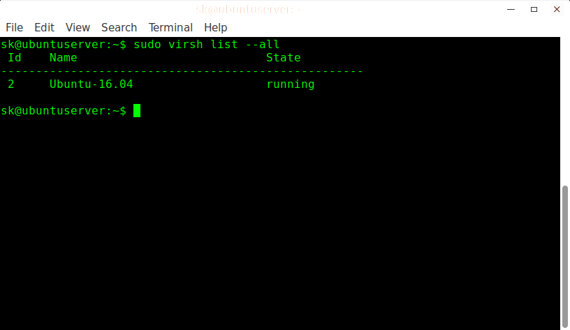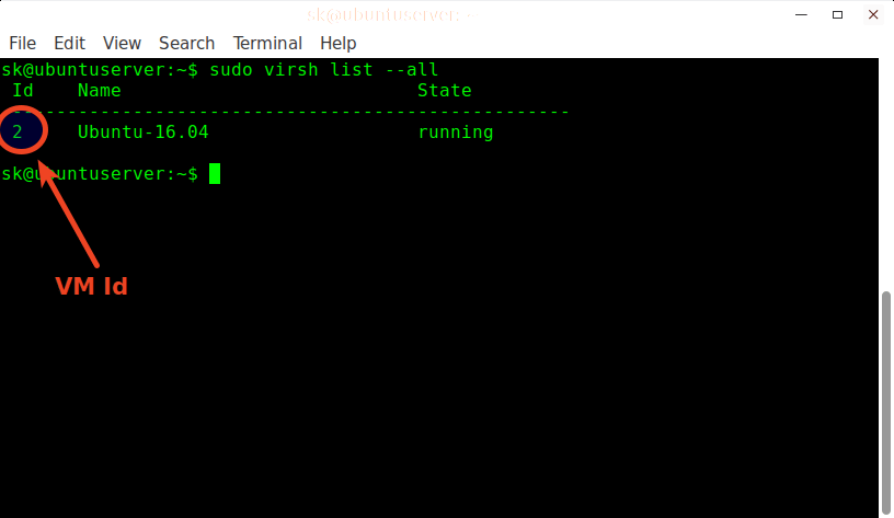 Id Name State ---------------------------------------------------- 2 Ubuntu-16.04 running