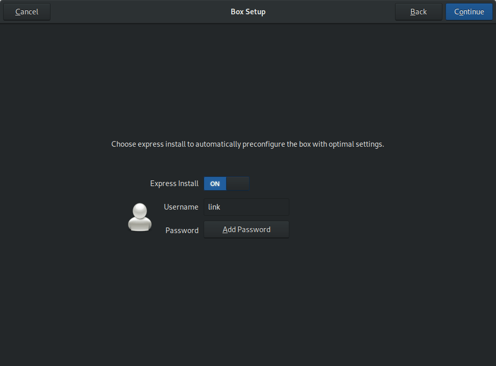 等介质下载完成(一般位于 ~/Downloads ),Boxes 会有一个“快速安装”的显示。填入账号和密码然后点击“继续”,当你确认了虚拟机的信息之后点击“创建”。“快速安装”会自动完成接下来的整个安装!(现在你可以去享受你的第二杯茶或者咖啡了)