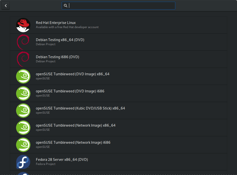 Boxes 可以安装很多操作系统,而不仅仅只是红帽企业版。 作为 KVM 和 qemu 的前端,Boxes 支持各种操作系统。使用 libosinfo,Boxes 可以自动下载(在某些情况下安装)相当多不同操作系统。
