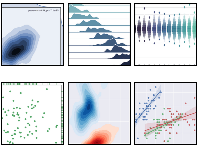 Seaborn 也是一个强大的用于统计和绘图的可视化库。它在 Matplotlib 的基础上提供样式灵活的 API、用于统计和绘图的常见高级函数,还可以和 Pandas 提供的功能相结合。要学习使用 Seaborn,可以参考这篇优秀的教程。