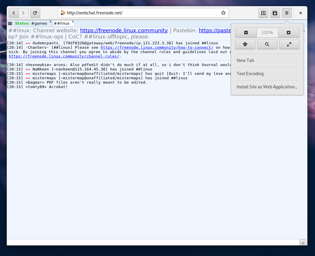 接下来,启动 GNOME Web,然后去浏览要安装的 Web 应用。使用浏览器连接到应用,然后从菜单中选择“将站点安装为 Web 应用”: