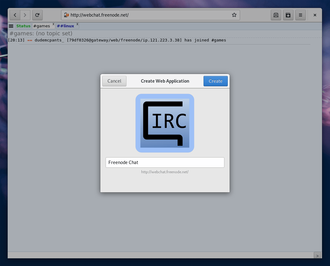 最后,按下“创建”以 “安装” 你的新 Web 应用。创建 Web 应用后,关闭 GNOME Web。
