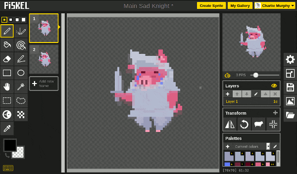 在这个 Jam 期间,Piskel 极大地帮助我们的两个功能是 洋葱皮 和 精灵序列图 导出。