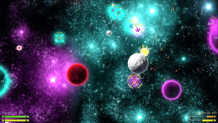 火星 是一个自上而下的太空射击游戏,游戏机制类似传统街机游戏 “ 爆破彗星 ”。玩家在操控一个太空船的同时向敌方射击并躲避敌军的弹幕射击。游戏有标准的死斗和团体死斗模式,除此之外也有更新鲜的比赛形式 —— 例如在一个模式下,玩家需要控制一个球使其进入敌方母星。该游戏支持本地多人游戏,但遗憾的是不支持多人联机。该游戏的开发更新似乎已经停止,所以该游戏之后增加联机模式的几率很小,但就算没有联机支持,这个游戏仍然值得一试。