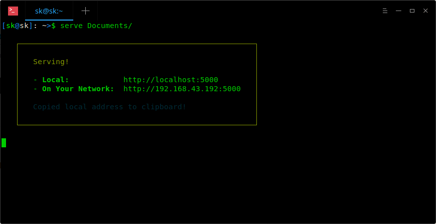 serve 实用程序以简单的布局显示给定目录的内容。你可以下载(右键单击文件并选择“将链接另存为…”)或只在浏览器中查看它们。