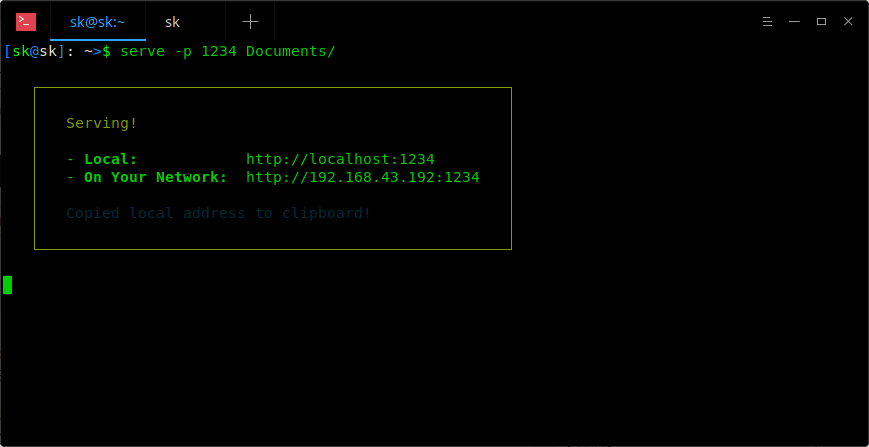 曾经想通过网络共享你的文件或项目,但不知道怎么做?别担心!这里有一个名为 serve 的简单实用程序,可以通过网络即时共享你的文件。这个简单的实用程序会立即将你的系统变成一个静态文件服务器,允许你通过网络提供文件。你可以从任何设备访问这些文件,而不用担心它们的操作系统是什么。你所需的只是一个 Web 浏览器。这个实用程序还可以用来服务静态网站。它以前称为 “list” 或 “micri-list”,但现在名称已改为 “serve”(提供),这更适合这个实用程序的目的。