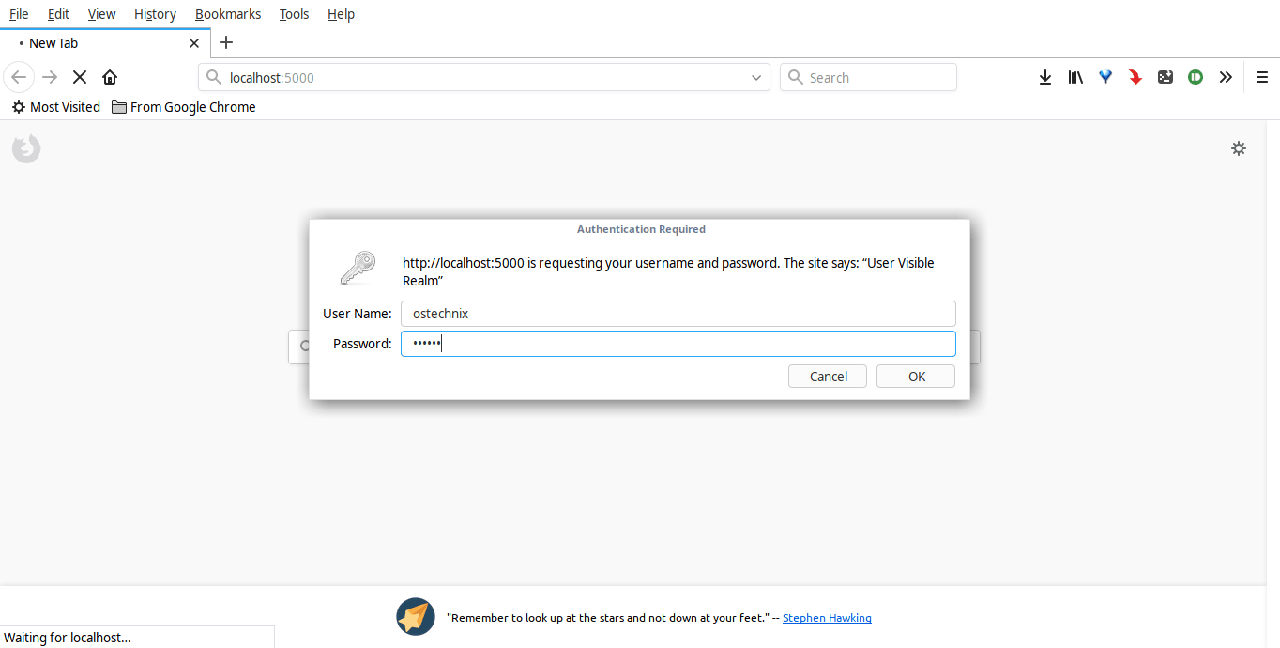 要从本地系统访问内容,你只需打开 Web 浏览器,输入 URL http://localhost:5000/: