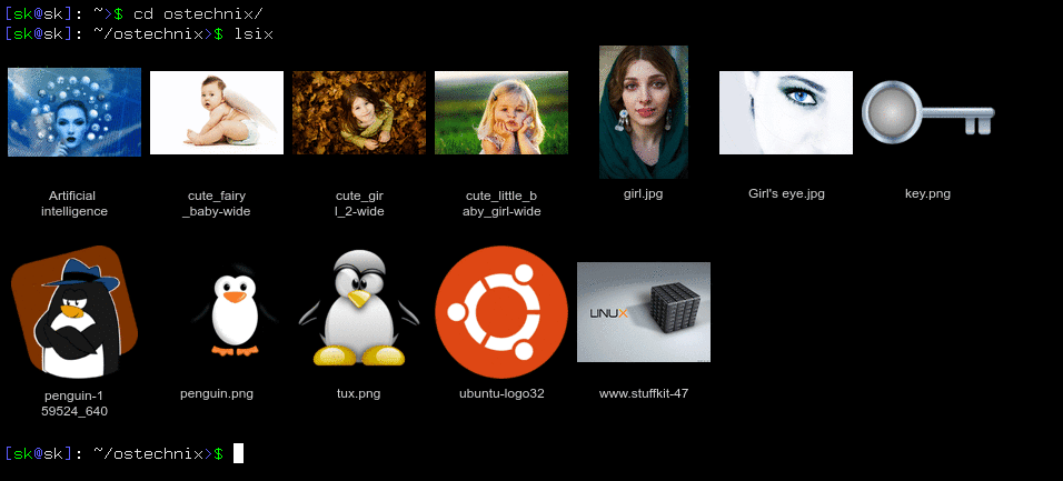 如果在没有路径的情况下运行它,它将显示在当前工作目录中的缩略图图像。我在名为 ostechnix 的目录中有几个文件。