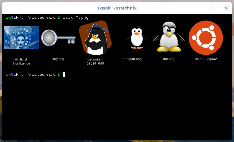 就像我已经说过的那样,lsix 非常简单实用。它没有任何命令行选项或配置文件。你所要做的就是将文件的路径作为参数传递,如下所示。