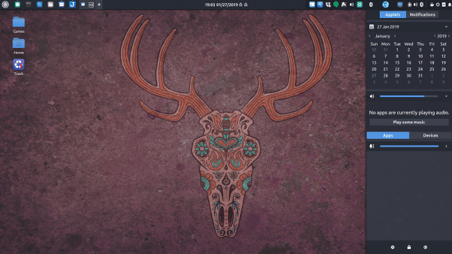其默认桌面非常简约,只有面板和空白桌面。Budgie 包含一个集成的侧边栏(称为 Raven),通过它可以快速访问日历、音频控件和设置菜单。Raven 还包含一个集成的通知区域,其中包含与 MacOS 类似的统一系统消息显示。