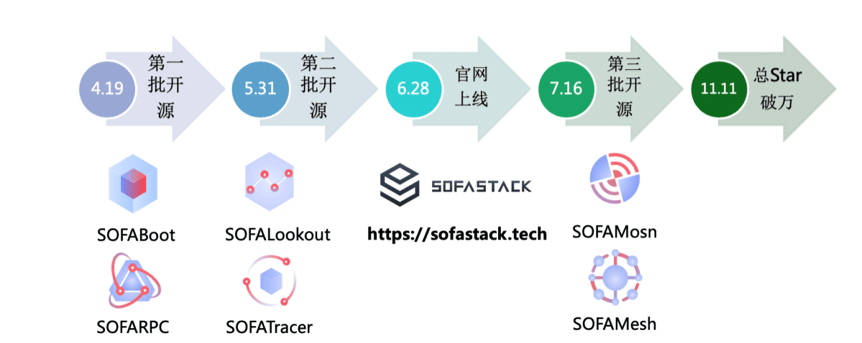 SOFA 从 2018 年 4 月开始对外开源,得益于社区和开发者的认同,在经历了半年多的时间,SOFA 所有相关的开源代码,获得了累计 10000+ 的 Star和 80 多个代码贡献者