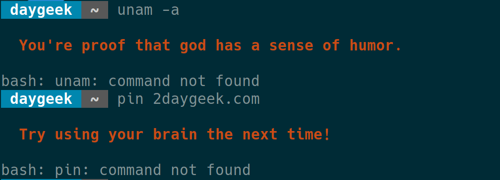 via: https://www.2daygeek.com/bash-insulter-insults-the-user-when-typing-wrong-command/