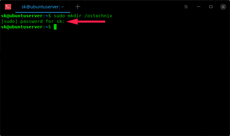 $ sudo mkdir /ostechnix [sudo] password for sk:
