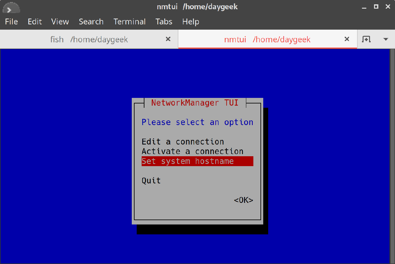 方法 3:在 Linux 中使用 nmtui 来更改主机名