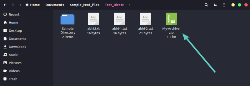 zip -r myzip abhi-1.txt abhi-2.txt sample_directory adding: abhi-1.txt (stored 0%) adding: abhi-2.txt (stored 0%) adding: sample_directory/ (stored 0%) adding: sample_directory/newfile.txt (stored 0%) adding: sample_directory/agatha.txt (deflated 41%)