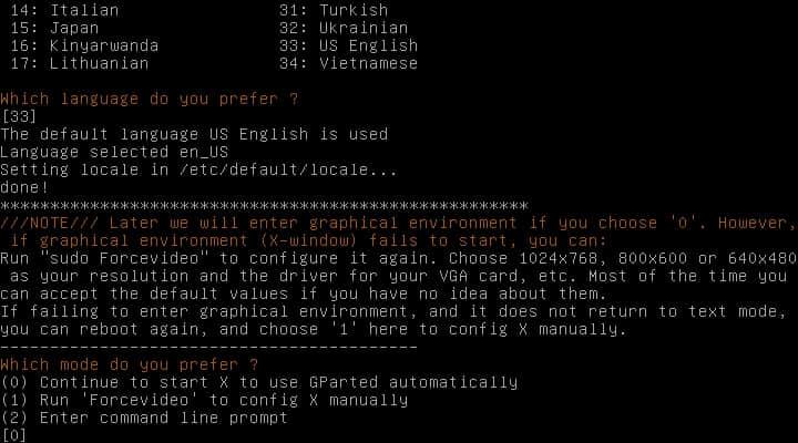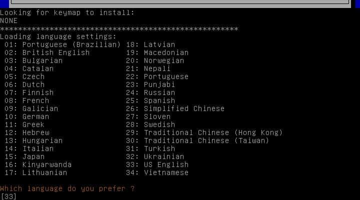 默认情况下,它选择 “33” 美国英语,按下回车即可。
