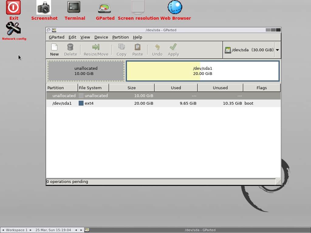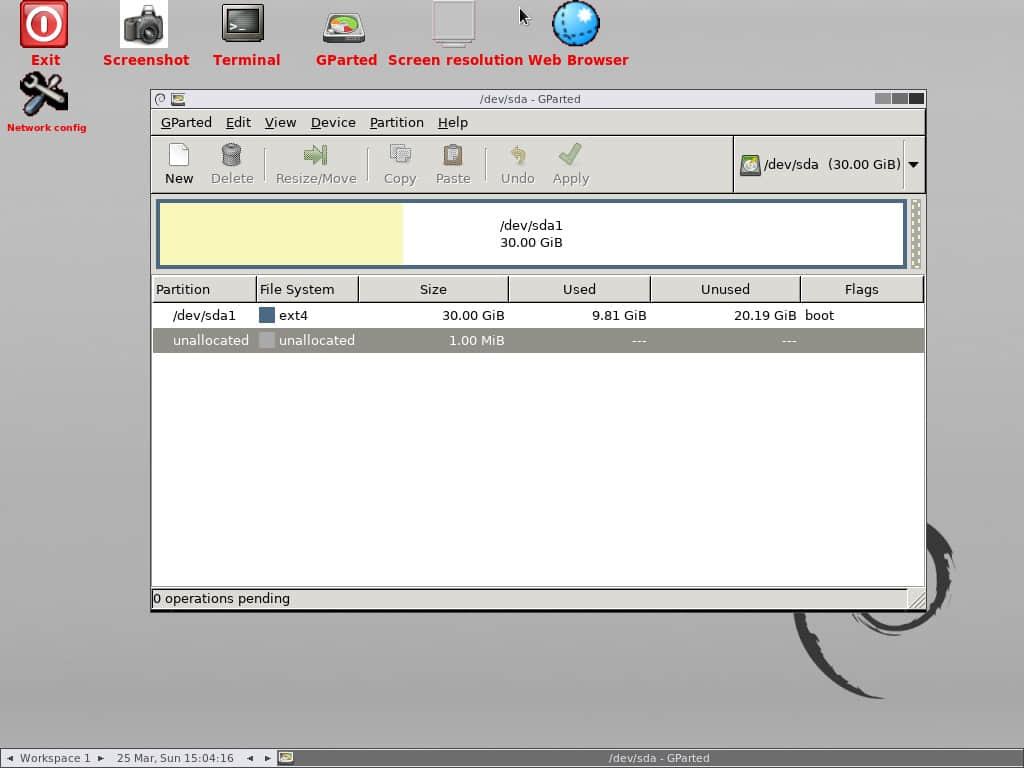 现在,GParted Live 屏幕已经加载,它显示我以前创建的分区列表。
