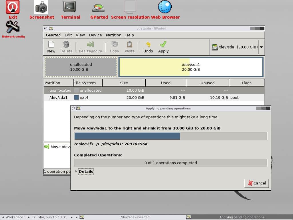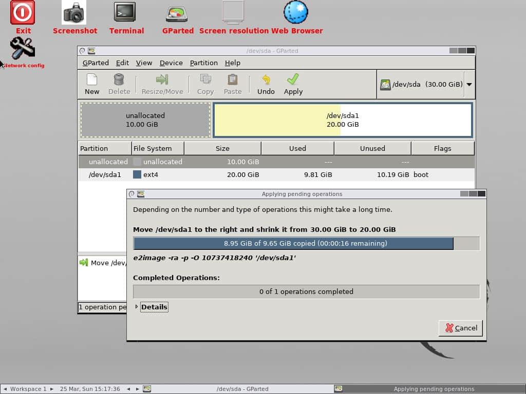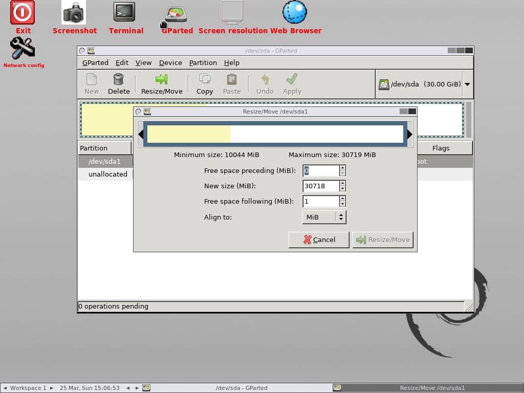 via: https://www.2daygeek.com/how-to-resize-active-primary-root-partition-in-linux-using-gparted-utility/
