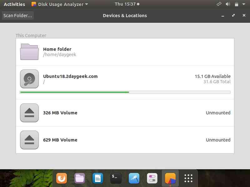 图形界面用户可以使用“磁盘利用率分析器工具”来查看当前利用率。
