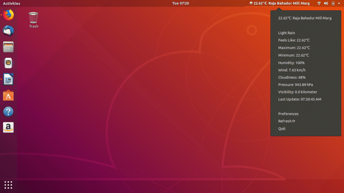 简单天气指示器是用 Python 开发的开源天气提示应用。它自动侦查你的位置,并显示你天气信息像温度,下雨的可能性,湿度,风速和可见度。