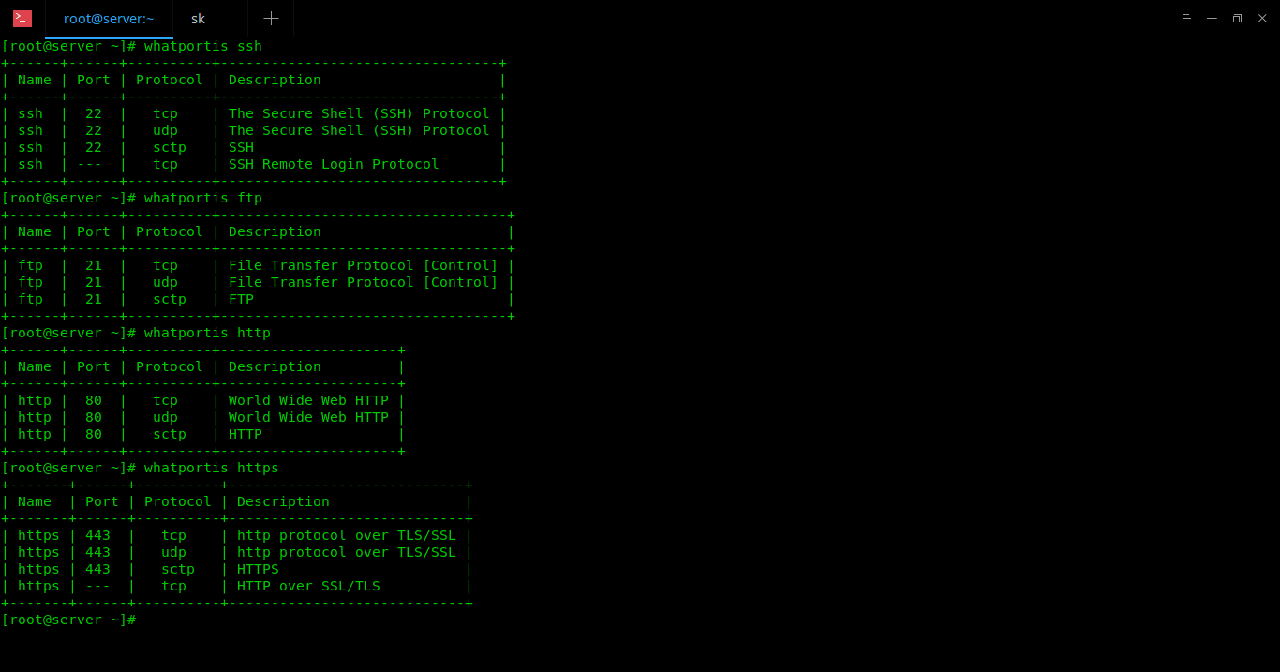 $ whatportis ssh $ whatportis ftp $ whatportis http
