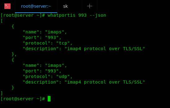$ whatportis 993 --json