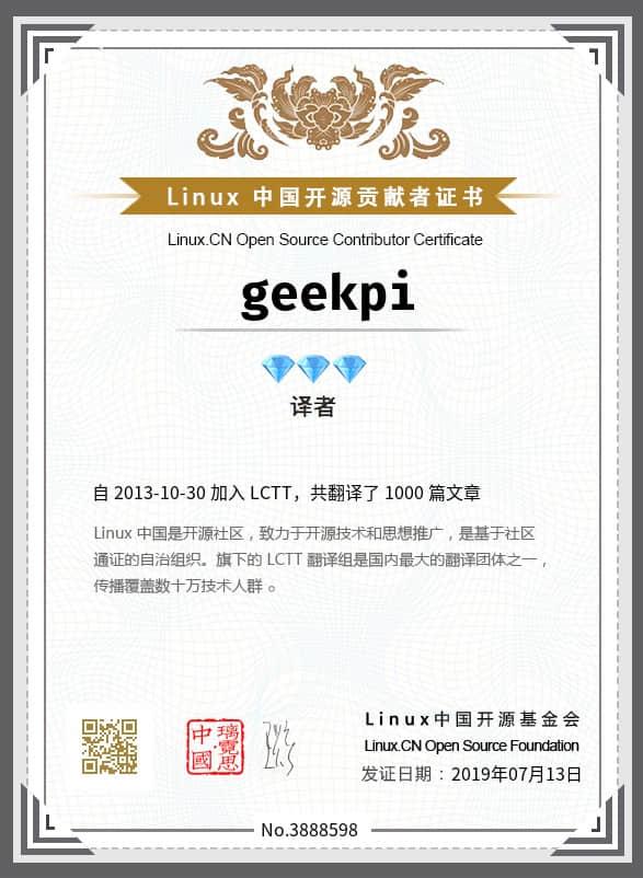 诸位,作为 Linux 中国开源社区及旗下的志愿者翻译组 LCTT 的创始人,我很荣幸地宣布,我们今天迎来了第一位翻译文章数量达到 1000 篇文章的翻译志愿者: geekpi 同学!