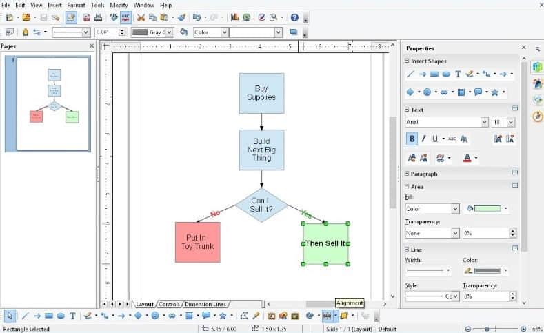 LibreOffice Draw 模块是微软 Visio 的最佳开源替代方案之一。在它的帮助下,你可以选择制作一个想法的速写或一个复杂的专业平面布置图来展示。流程图、组织结构图、网络图、小册子、海报等等!所有这些都不需要花一分钱。