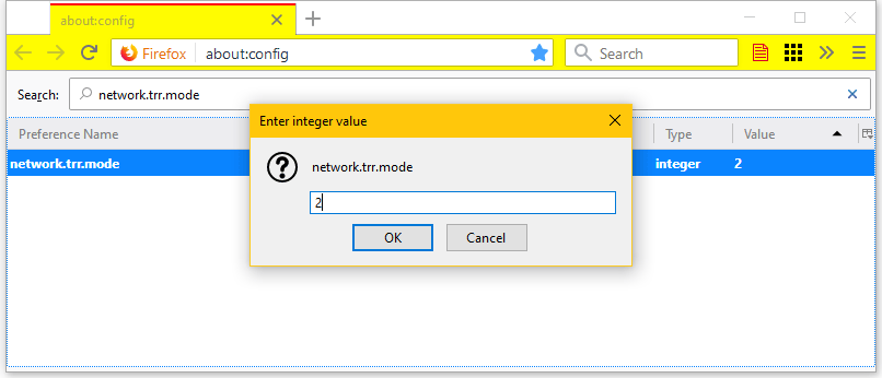 步骤 2:第一个设置是 network.trr.mode。这打开了 DoH 支持。此设置支持四个值: