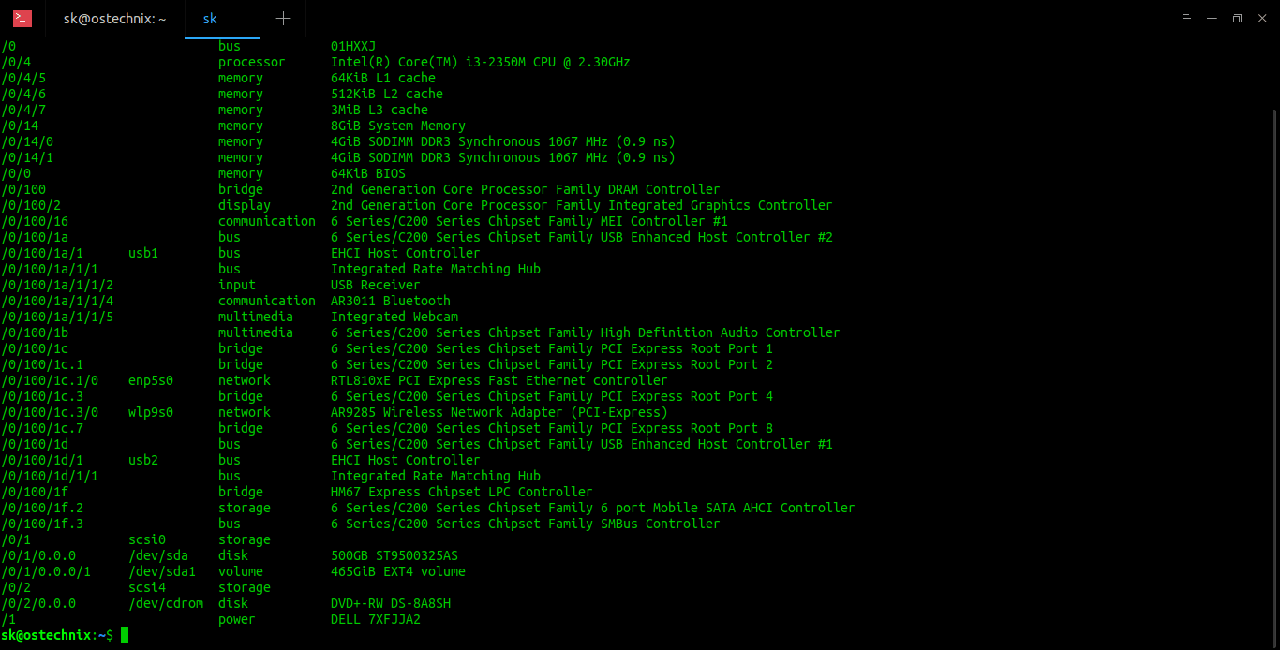 $ sudo lshw -short